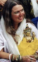 Prema Dasara with statue of Tara Given to her by the Dali Lama