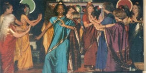 In 1989 I went to Toronto to attend the Kalachakra given by HE Jamgon Kongtrul Rinpoche. While there a local woman had asked if I would teach the Tara Dance to her students. I brought the costumes and taught the Tara Dance for the first time outside of Maui.