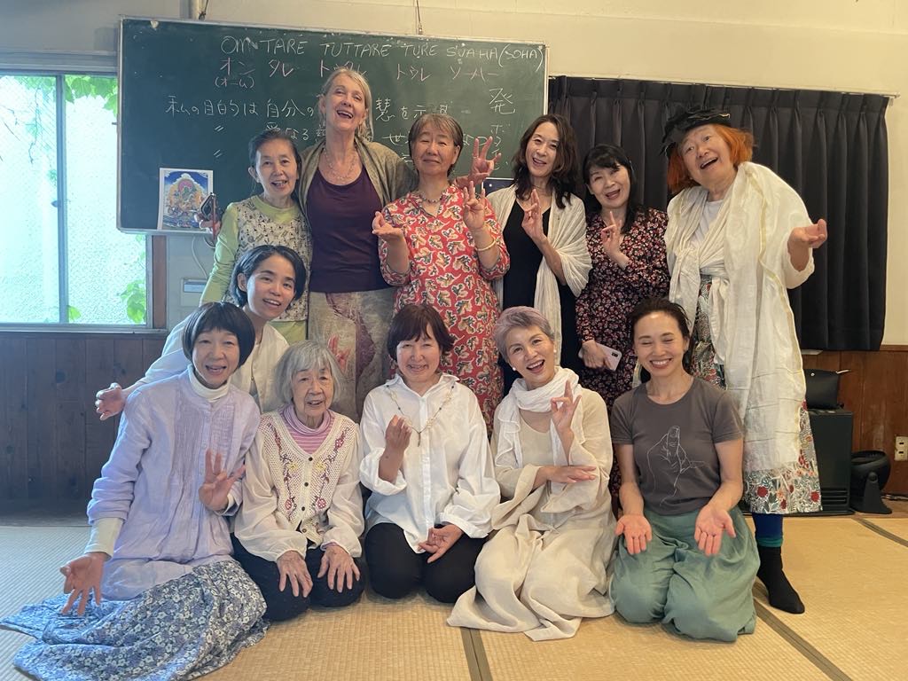 April 28th we danced Tara again in Tokyo with some new and ‘old’ Tara sisters. Mattchan, an enthusiastic Tara sister brought her 92 year old mother who was a bit unsure and shy but loves dancing so she gave it a go. She was amazing and pretty much kept up with the whole thing. Everyone was so happy and willing to learn and express themselves through the dance. Yasko, the organizer of the group has had a year of personal challenges but herself, Izumi, our translator of texts and Tara supporter, met and set forth a new structure for Tara in Japan. I look forward to next years adventures. felicity