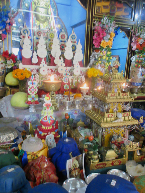 This year the annual Yangdrup Puja that began on November 18th…all of the Wealth Vases have been put in front and Dzambhala’s Palace has also been put in the center…here is a picture and our Wealth Vases…I arranged ours to be right next to the Palace…