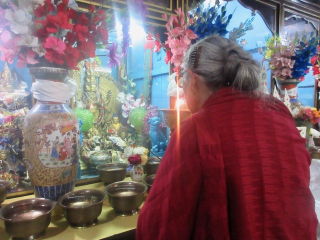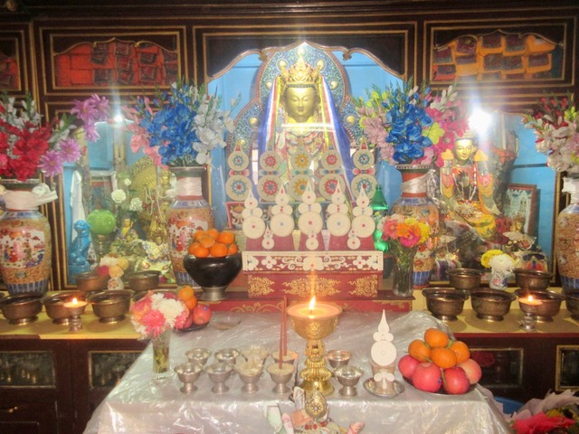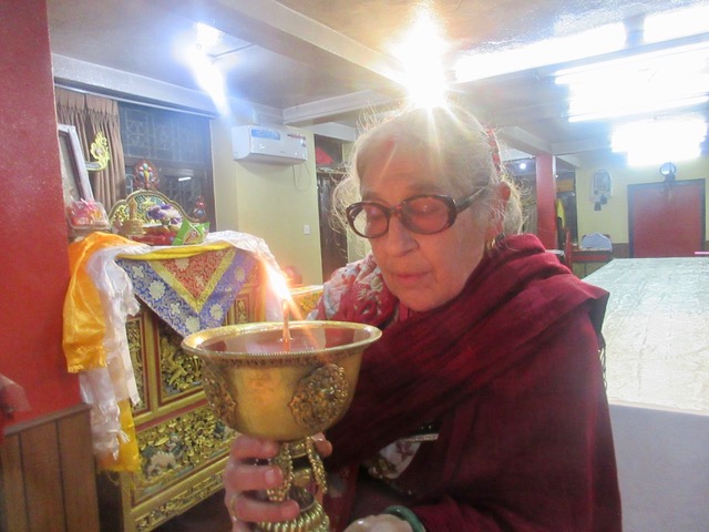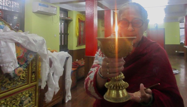 A few days before New Year began, the Nyerpa-la (manager of our office) decided we should have the 21 Tara prayers performed for the purpose of helping the New Year flow in nicely for the sake and benefit for all! In Bodhgaya on December 31st the Dalai Lama had the 21 Tara prayers recited, he also gave some teachings explaining the wonderful essence of all the Taras…how happy I was we had decided to do the Tara prayers New Year morning! New Year morning when I was going into our monastery to make offerings for the sake and benefit of all…I felt such a nice blessing from the Holy ’self existing’ Swayambhu Stupa which is on the hill opposite to ours…